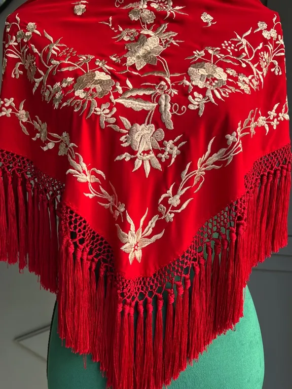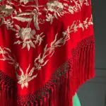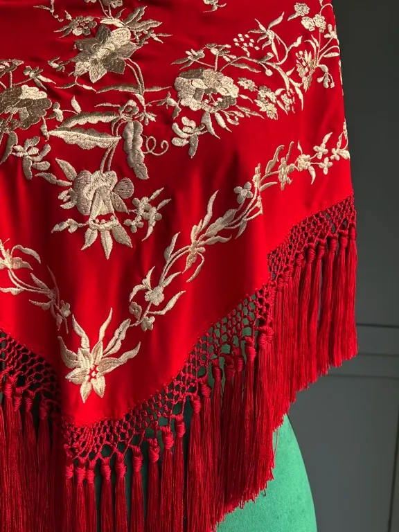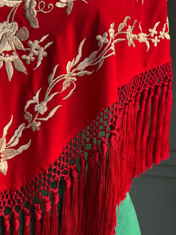 Mantón rojo bordado beige