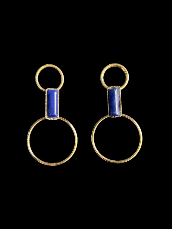 Pendientes azul/dorado aro