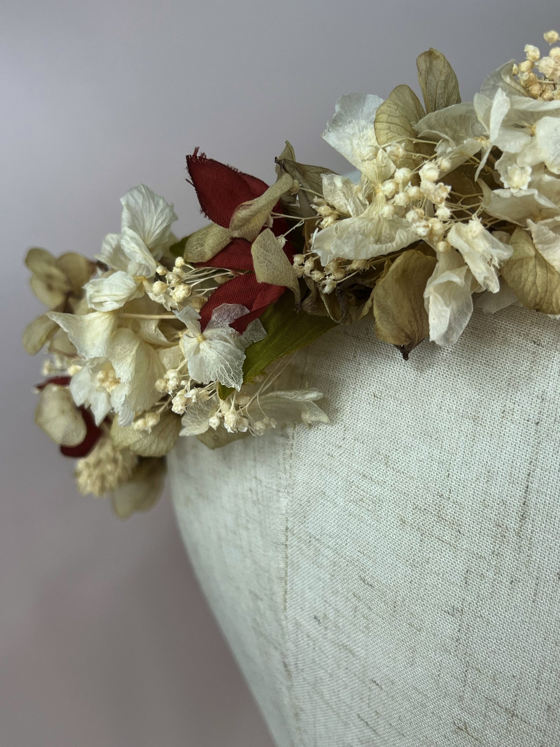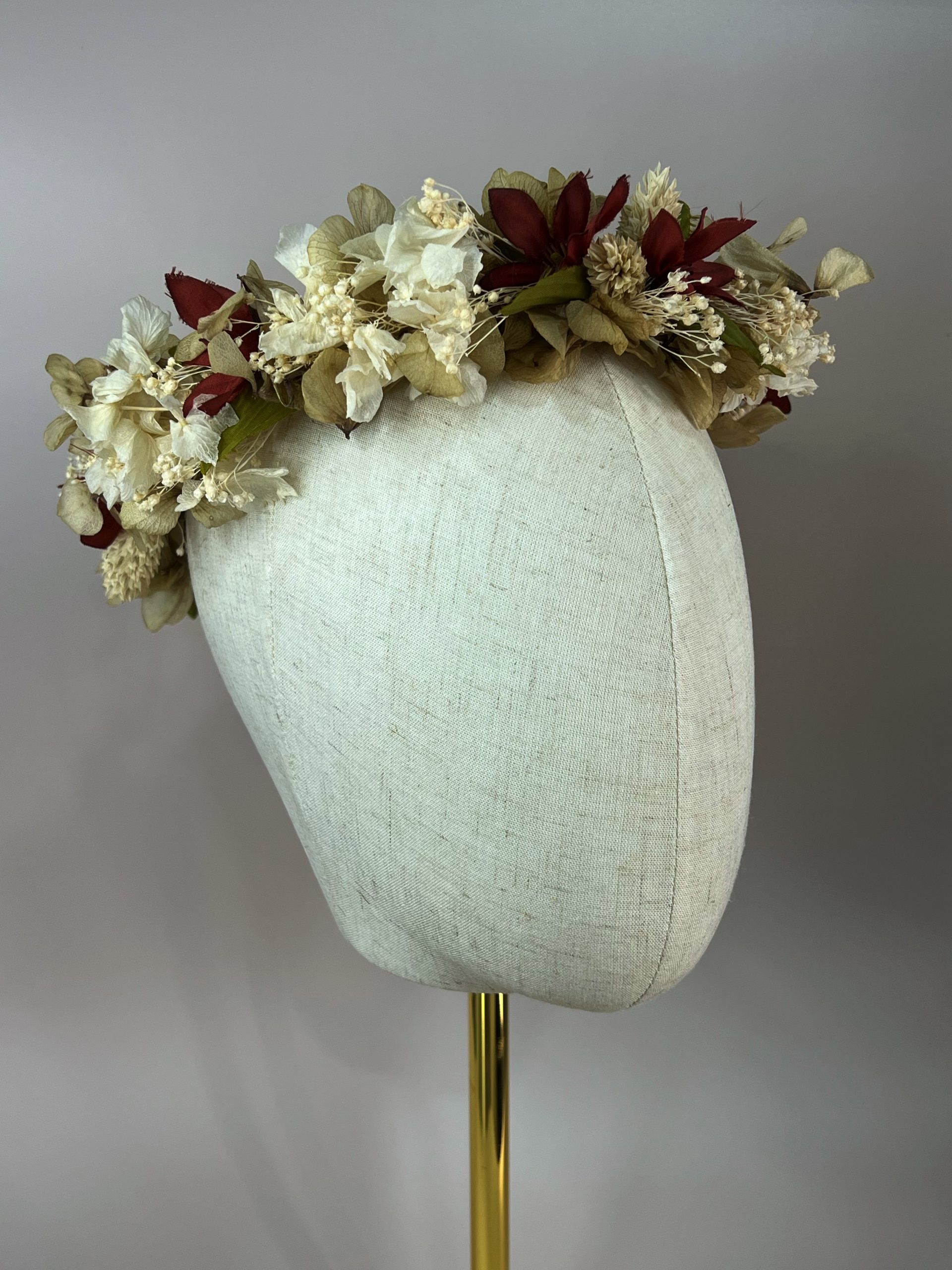 Corona de flores preservadas ideal para niñas de comunión o para una novia de estilo romántico.